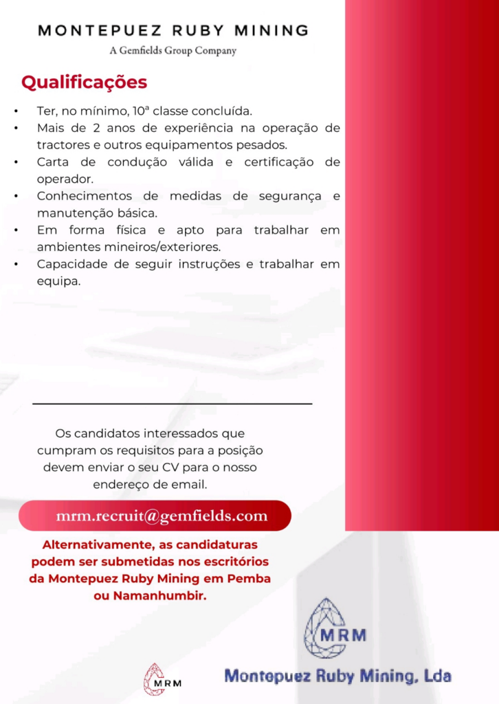 3 Vagas para Operadores de Tractores-Cabo Delgado
