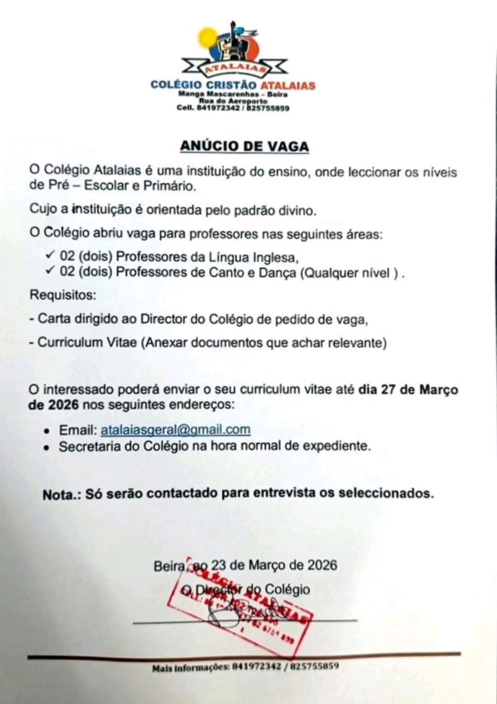 4 Vagas para professores no Colégio Atalaias-Beira