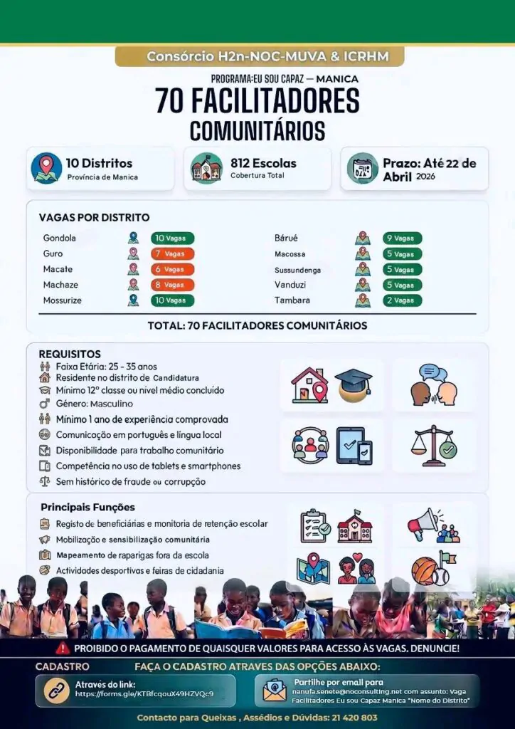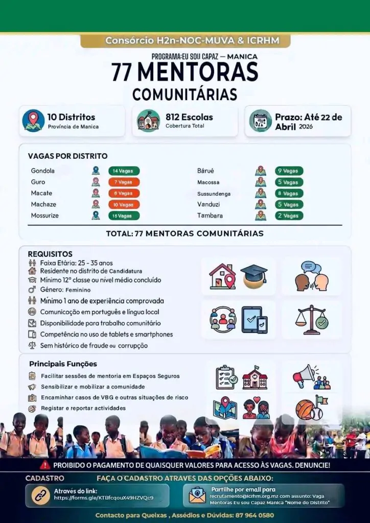 70 Vagas para Facilitadores Comunitários e 77 Vagas para Mentoras Comunitárias-Manica