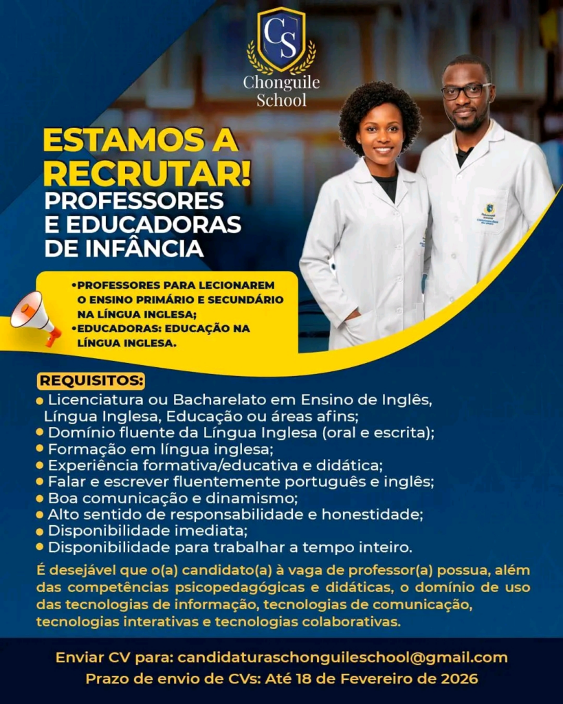Enviar CV para o e-mail: candidaturaschonguileschool@gmail.com