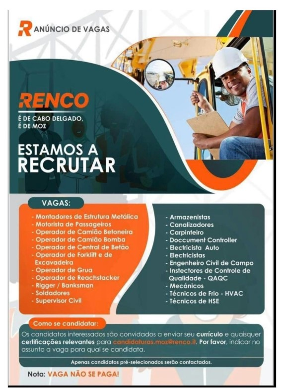 RENCO anuncia 22 vagas de emprego para Cabo Delgado