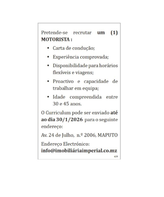 Endereço Electrónico: info@imobiliáriaimperial.co.mz