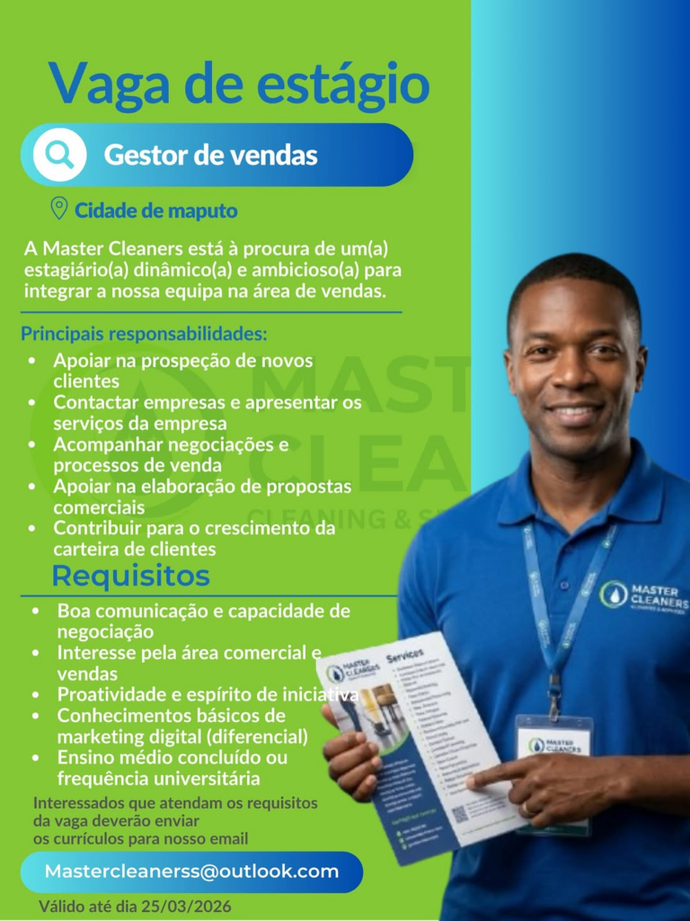 A Master Cleaners está à procura de um(a) estagiário(a) dinâmico(a) e ambicioso(a) para integrar a nossa equipa na área de vendas.
