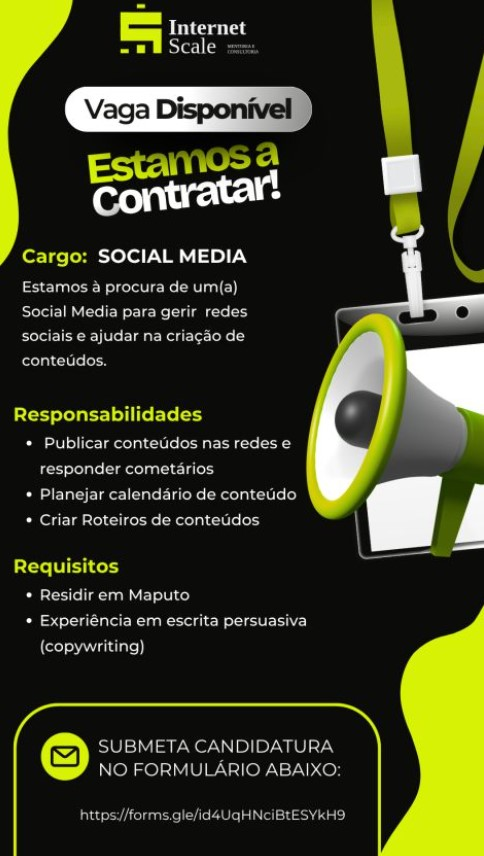 Estamos à procura de um(a) Social Media para gerir nossas redes sociais e ajudar na produção de conteudos.
